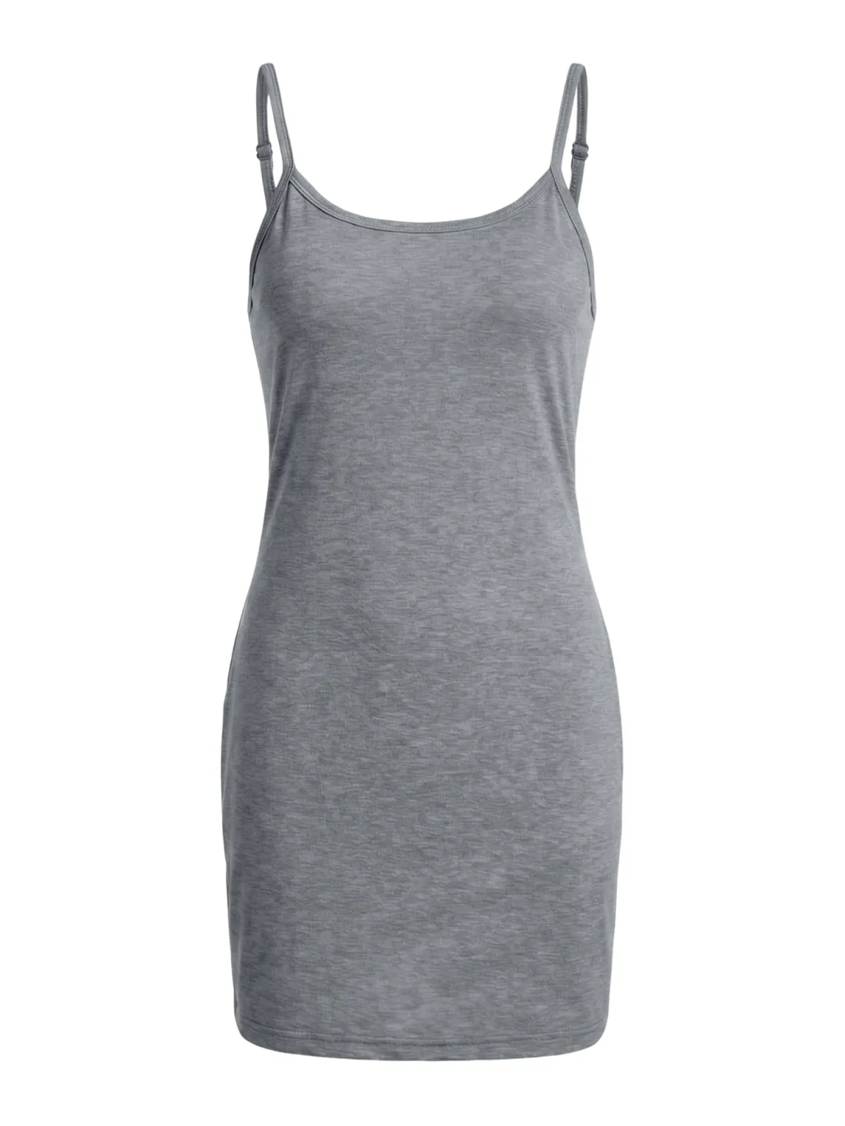 Design: Gevoerde zoom/rand, Ingelegde kraag; Materiaal: Jersey; Halstype: Ronde hals; Motief: Effen; Soort bandjes: Spaghettibandjes; Extra's: Verstelbare bandjes, Op staal naden; Lengte: Kort/mini; Snit: Recht; Pasvorm: Normale pasvorm; Armlengte: Mouwloos
