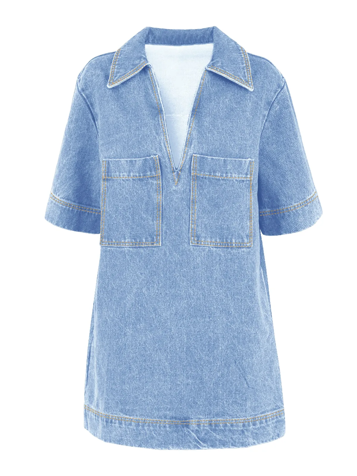 Design: Borstzak, Zakken aan de zijkant; Materiaal: Denim; Halstype: Overhemdkraag (klassiek); Motief: Effen; Extra's: Contrasterende naden; Lengte: Kort/mini; Snit: Recht; Pasvorm: Losse pasvorm; Armlengte: Halve mouw
