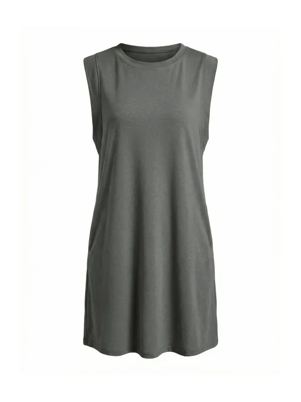 Design: Gevoerde zoom/rand, Rechte zoom, Zakken aan de zijkant; Materiaal: Jersey; Halstype: Ronde hals; Motief: Mélange; Extra's: Voelt zacht aan; Lengte: Knielengte; Snit: Recht; Pasvorm: Losse pasvorm; Armlengte: Mouwloos