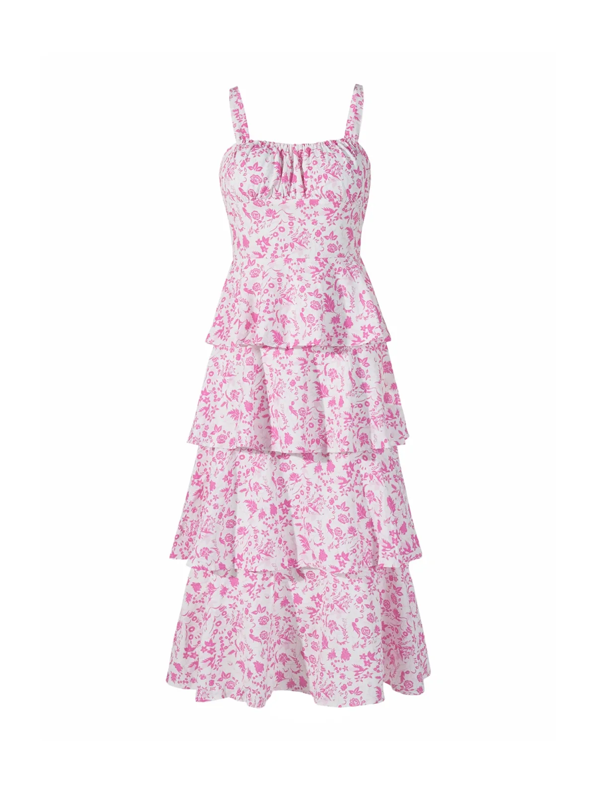 Design: Om te knopen/binden; Halstype: Carréhals; Motief: Bloemenprint; Soort bandjes: Spaghettibandjes; Details: Cut-outs, Volant, Gedrapeerd; Extra's: All-over patroon; Lengte: 3/4 lengte; Snit: Getailleerd; Pasvorm: Normale pasvorm; Armlengte: Mouwloos