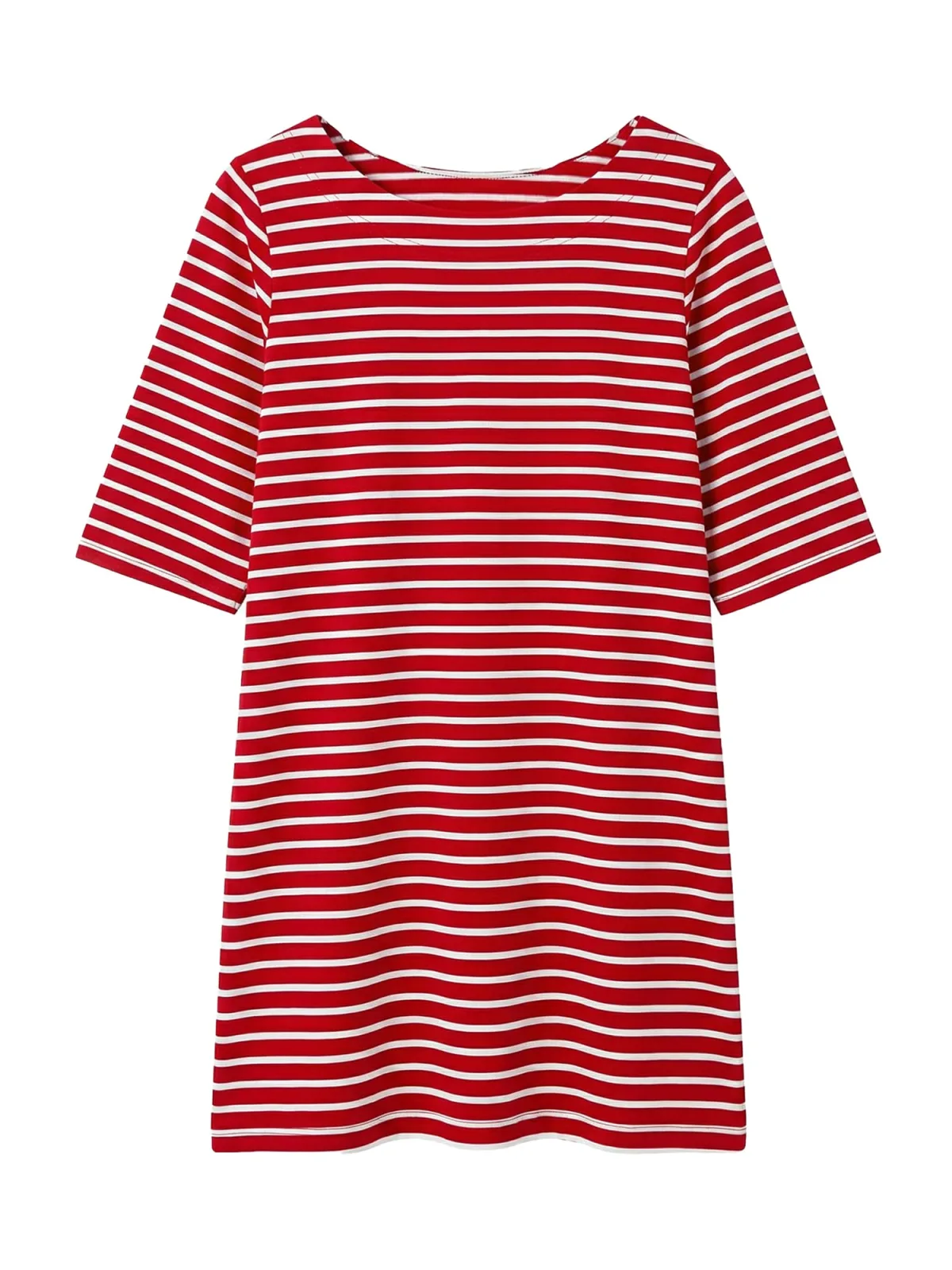 Design: Gevoerde zoom/rand; Materiaal: Jersey; Halstype: Ronde hals; Motief: Gestreept; Extra's: All-over patroon; Lengte: Kort/mini; Snit: Recht; Pasvorm: Losse pasvorm; Armlengte: Halve mouw