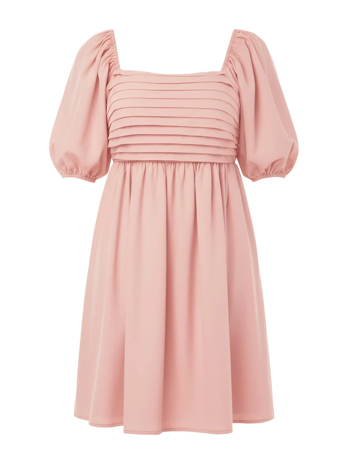 Design: Gevoerde zoom/rand; Materiaal: Viscose; Halstype: Carréhals; Motief: Effen; Details: Gedrapeerd; Extra's: Op staal naden; Lengte: Kort/mini; Snit: Getailleerd; Pasvorm: Normale pasvorm; Armlengte: Driekwart mouw