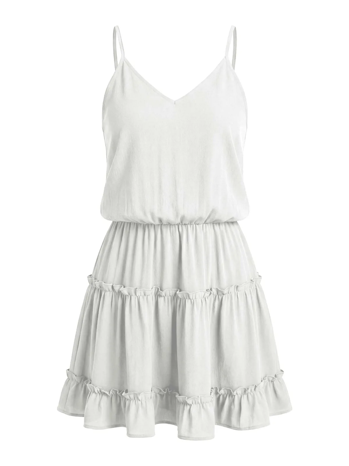 Design: Gevoerde zoom/rand, Tailleband; Halstype: V-hals; Motief: Effen; Soort bandjes: Racerback; Details: Ruches, Gedrapeerd; Extra's: Op staal naden, Voelt zacht aan; Lengte: Kort/mini; Snit: Getailleerd; Pasvorm: Normale pasvorm; Armlengte: Mouwloos
