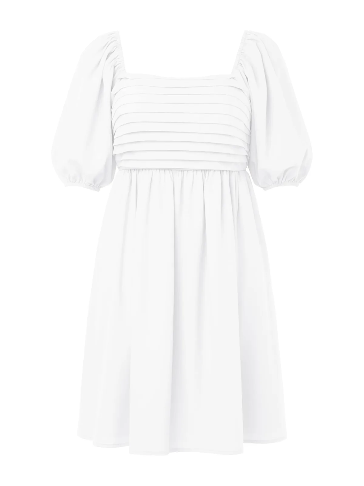 Design: Gevoerde zoom/rand; Materiaal: Viscose; Halstype: Carréhals; Motief: Effen; Details: Gedrapeerd; Extra's: Voelt zacht aan; Lengte: Kort/mini; Snit: Getailleerd; Pasvorm: Normale pasvorm; Armlengte: Driekwart mouw