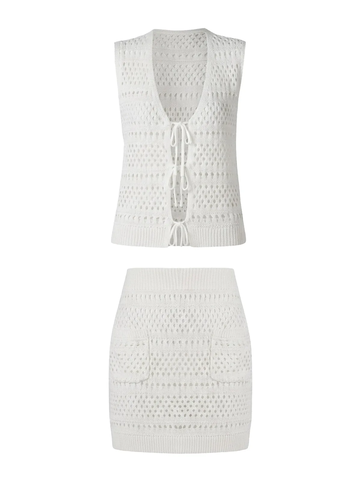 Design: Om te knopen/binden; Voering: Niet gevoerd; Materiaal: Knitwear; Motief: Effen; Details: Mesh; Extra's: Fully fashioned, Voelt zacht aan; Lengte: Kort/mini; Pasvorm: Normale pasvorm; Armlengte: Mouwloos; Taillehoogte: Mid waist