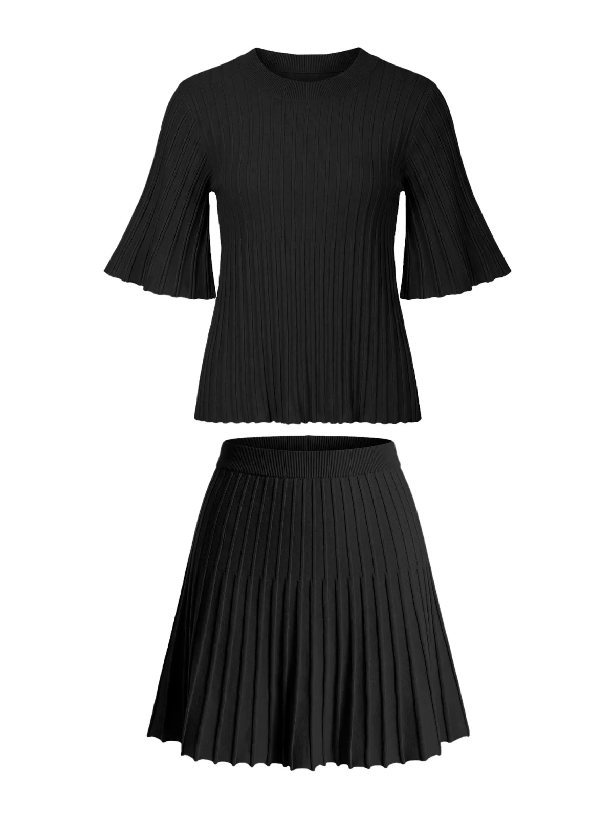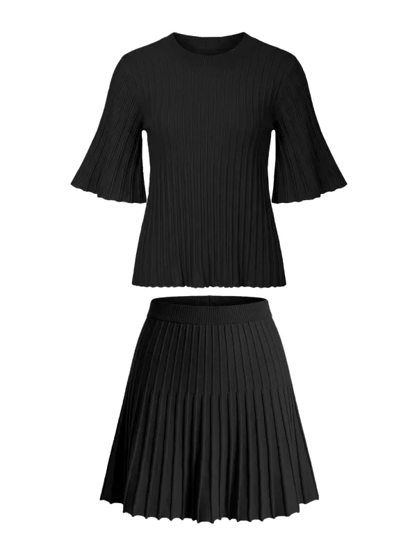 Design: Geribbelde kraag, Elastische taille/zoom, Trompetmouwen; Voering: Niet gevoerd; Materiaal: Knitwear; Motief: Effen; Kraag: Zonder kraag; Details: Plissé; Extra's: Op staal naden, Met textuur; Lengte: Kort/mini; Pasvorm: Normale pasvorm; Armlengte: Halve mouw; Taillehoogte: Mid waist