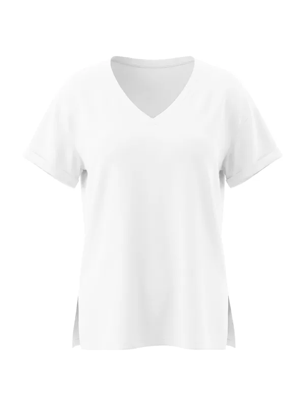 Design: Mouw revers, Zijdelingse inkepingen, Diepe snit/decolleté, Overcut schouder, Brede mouwopeningen; Materiaal: Jersey; Halstype: V-hals; Motief: Effen; Extra's: Op staal naden, Voelt zacht aan; Pasvorm: Wijde pasvorm; Armlengte: Halve mouw; Lengte: Lange pasvorm
