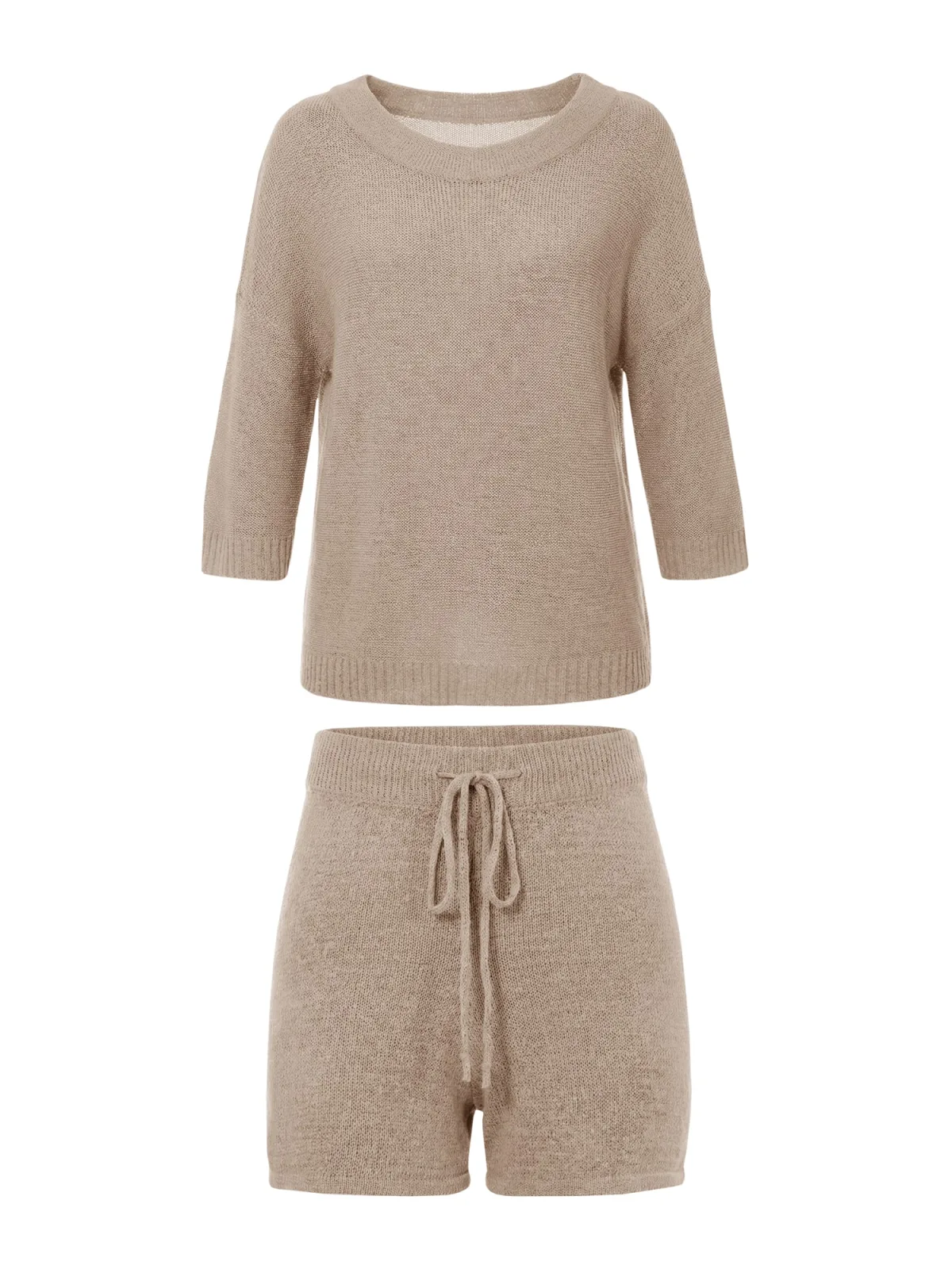Design: Taille met trekkoord, Geribd ceintuurtje, Overcut schouder; Materiaal: Knitwear; Motief: Effen; Extra's: Met textuur; Aantal per set: 1-delig; Lengte: Kort/mini; Pasvorm: Losse pasvorm; Armlengte: Driekwart mouw