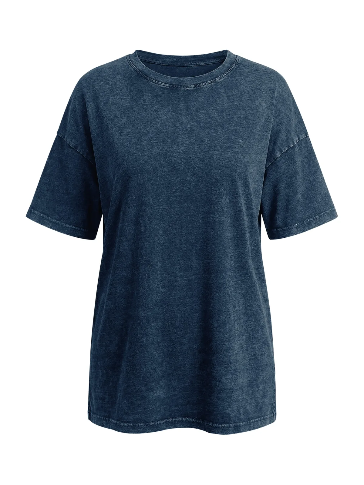 Design: Gevoerde zoom/rand, Overcut schouder, Brede mouwopeningen, Nektape; Materiaal: Jersey; Halstype: Ronde hals; Motief: Effen; Extra's: Gewassen effect; Pasvorm: Wijde pasvorm; Armlengte: Halve mouw; Lengte: Lange pasvorm
