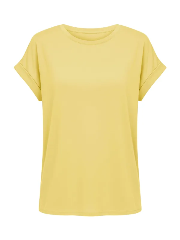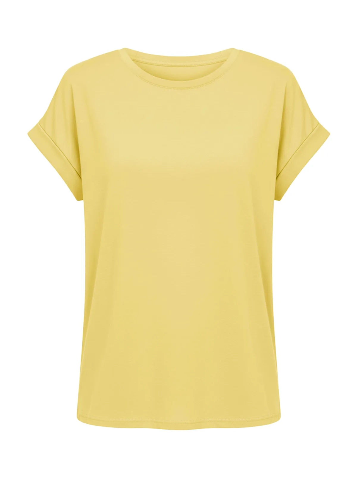 Design: Gevoerde zoom/rand, Rechte zoom, Geribd ceintuurtje; Materiaal: Jersey; Halstype: Ronde hals; Motief: Effen; Extra's: Op staal naden, Voelt zacht aan; Pasvorm: Losse pasvorm; Armlengte: Kwartmouw; Lengte: Normale lengte