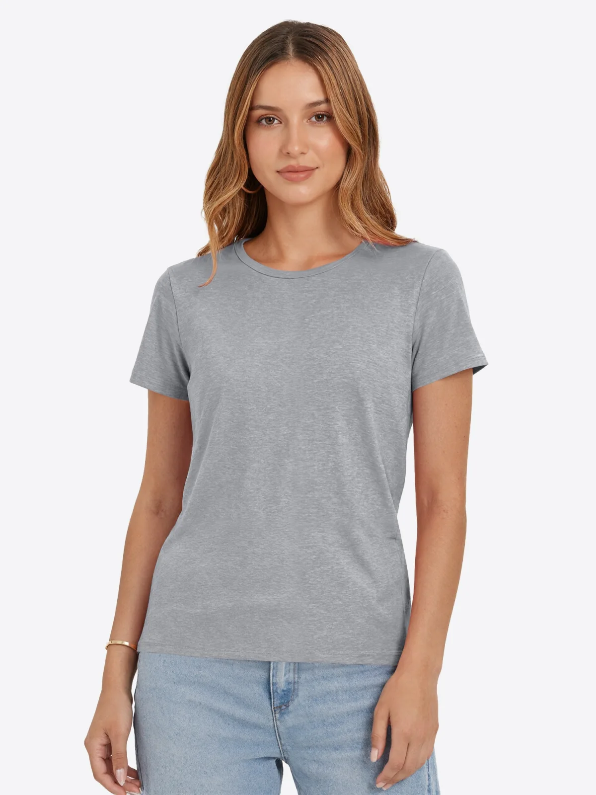 Design: Gevoerde zoom/rand; Materiaal: Jersey; Halstype: Ronde hals; Motief: Mélange; Extra's: Voelt zacht aan; Pasvorm: Normale pasvorm; Armlengte: Kwartmouw; Lengte: Normale lengte