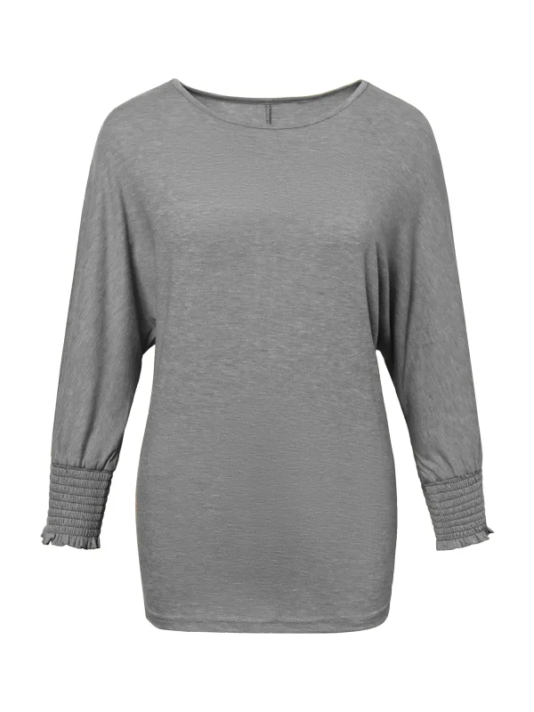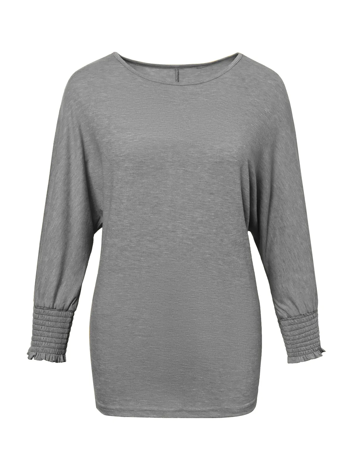 Design: Ingelegde kraag; Materiaal: Jersey; Halstype: Ronde hals; Motief: Mélange; Details: Ruches, Gedrapeerd; Extra's: Op staal naden; Pasvorm: Normale pasvorm; Armlengte: Driekwart mouw; Lengte: Normale lengte