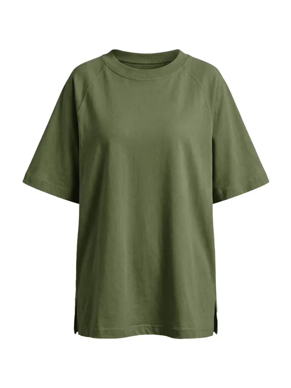 Design: Gevoerde zoom/rand, Geribbelde kraag, Oversized, Raglanmouwen; Materiaal: Jersey; Halstype: Ronde hals; Motief: Effen; Extra's: Op staal naden, Voelt zacht aan; Pasvorm: Losse pasvorm; Armlengte: Halve mouw; Lengte: Lange pasvorm
