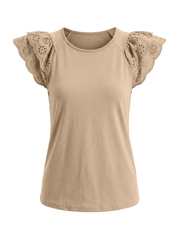 Design: Gevoerde zoom/rand; Materiaal: Jersey; Halstype: Ronde hals; Motief: Effen; Details: Borduursels, Volant, Gedrapeerd, Mesh; Extra's: Op staal naden; Pasvorm: Normale pasvorm; Armlengte: Kwartmouw; Lengte: Normale lengte
