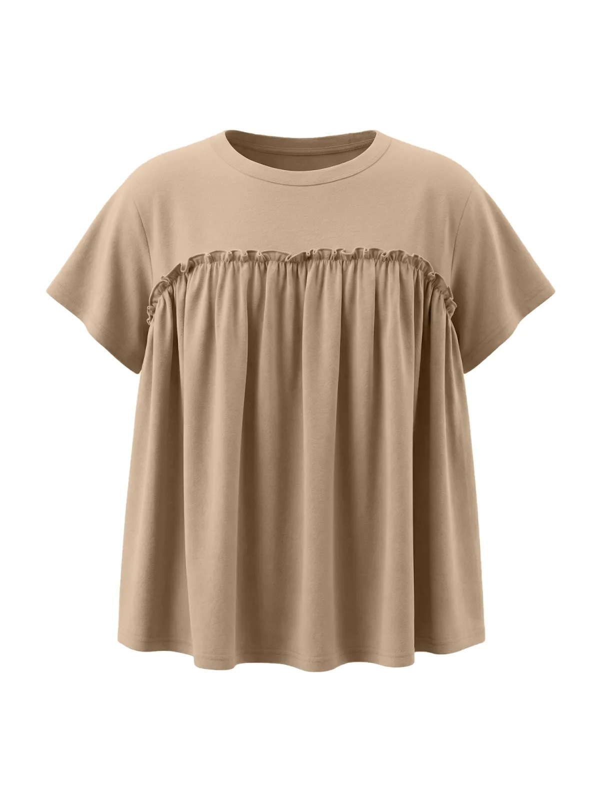 Design: Gevoerde zoom/rand; Halstype: Ronde hals; Motief: Effen; Details: Ruches, Gedrapeerd; Extra's: Op staal naden; Pasvorm: Losse pasvorm; Armlengte: Kwartmouw; Lengte: Normale lengte