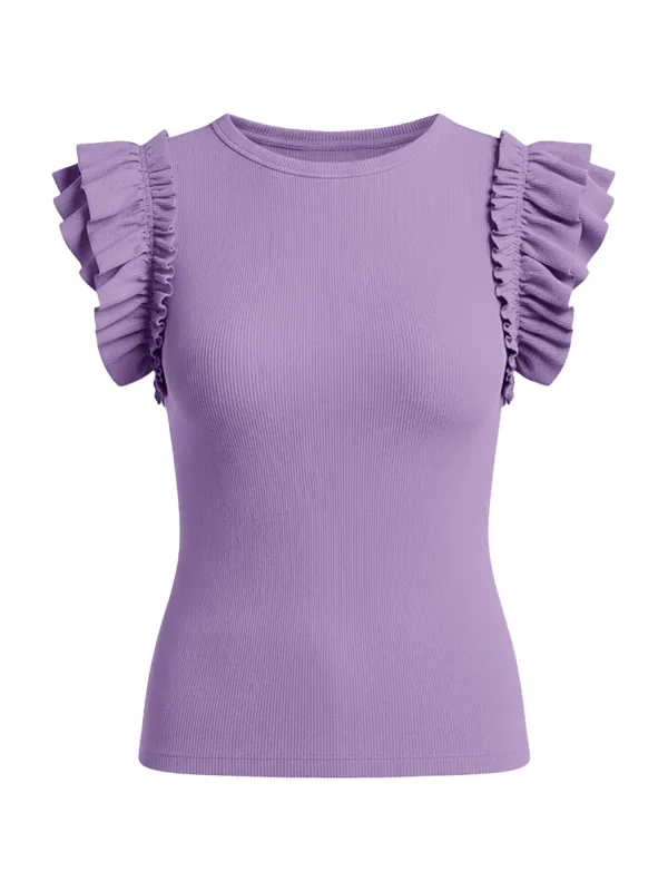 Design: Gevoerde zoom/rand, Geribbeld gebreid; Materiaal: Jersey; Halstype: Ronde hals; Motief: Effen; Details: Ruches; Extra's: Met textuur; Pasvorm: Slanke pasvorm; Armlengte: Kwartmouw; Lengte: Normale lengte
