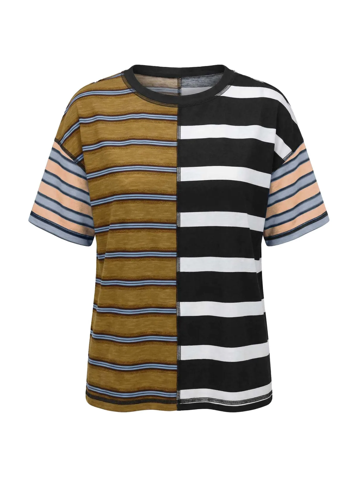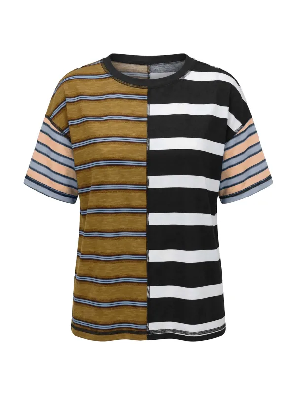 Design: Gevoerde zoom/rand, Geribbelde kraag, Overcut schouder; Materiaal: Jersey; Halstype: Ronde hals; Motief: Gestreept; Extra's: All-over patroon, Voelt zacht aan; Pasvorm: Losse pasvorm; Armlengte: Halve mouw; Lengte: Normale lengte