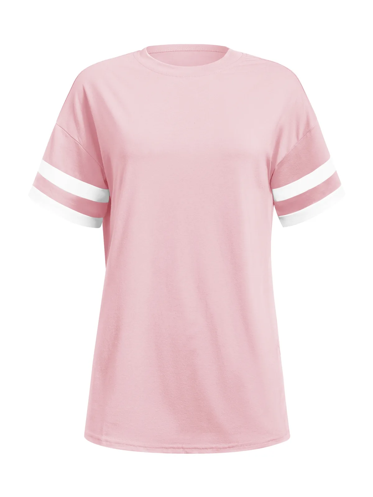 Design: Gevoerde zoom/rand; Materiaal: Jersey; Halstype: Ronde hals; Motief: Gestreept; Extra's: Op staal naden; Pasvorm: Losse pasvorm; Armlengte: Halve mouw; Lengte: Normale lengte