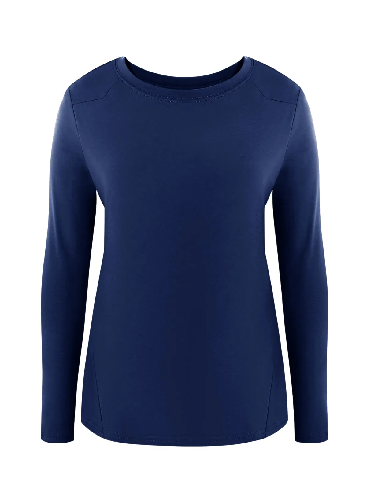 Design: Gevoerde zoom/rand, Geribbelde kraag; Materiaal: Jersey; Halstype: Ronde hals; Motief: Effen; Extra's: Op staal naden, Voelt zacht aan; Pasvorm: Normale pasvorm; Armlengte: Lange mouw; Lengte: Normale lengte