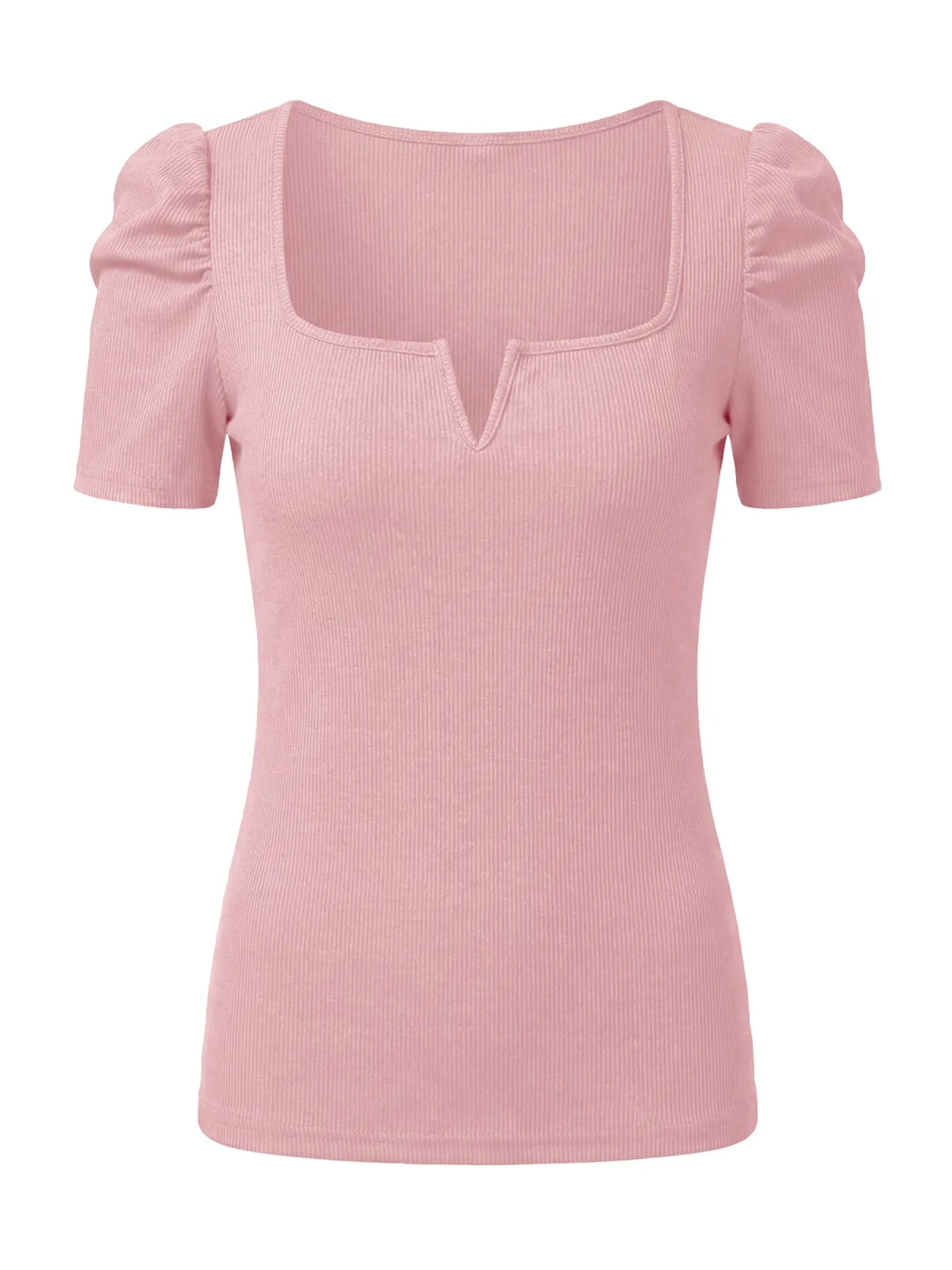 Design: Pofmouwen, Overige kragen; Materiaal: Jersey; Motief: Effen; Details: Gedrapeerd; Extra's: Voelt zacht aan; Pasvorm: Slanke pasvorm; Armlengte: Kwartmouw; Lengte: Normale lengte