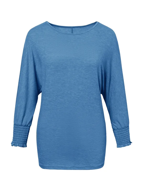 Design: Vleermuismouwen; Materiaal: Jersey; Halstype: Ronde hals; Motief: Mélange; Details: Ruches, Gedrapeerd; Extra's: Voelt zacht aan; Pasvorm: Normale pasvorm; Armlengte: Driekwart mouw; Lengte: Normale lengte