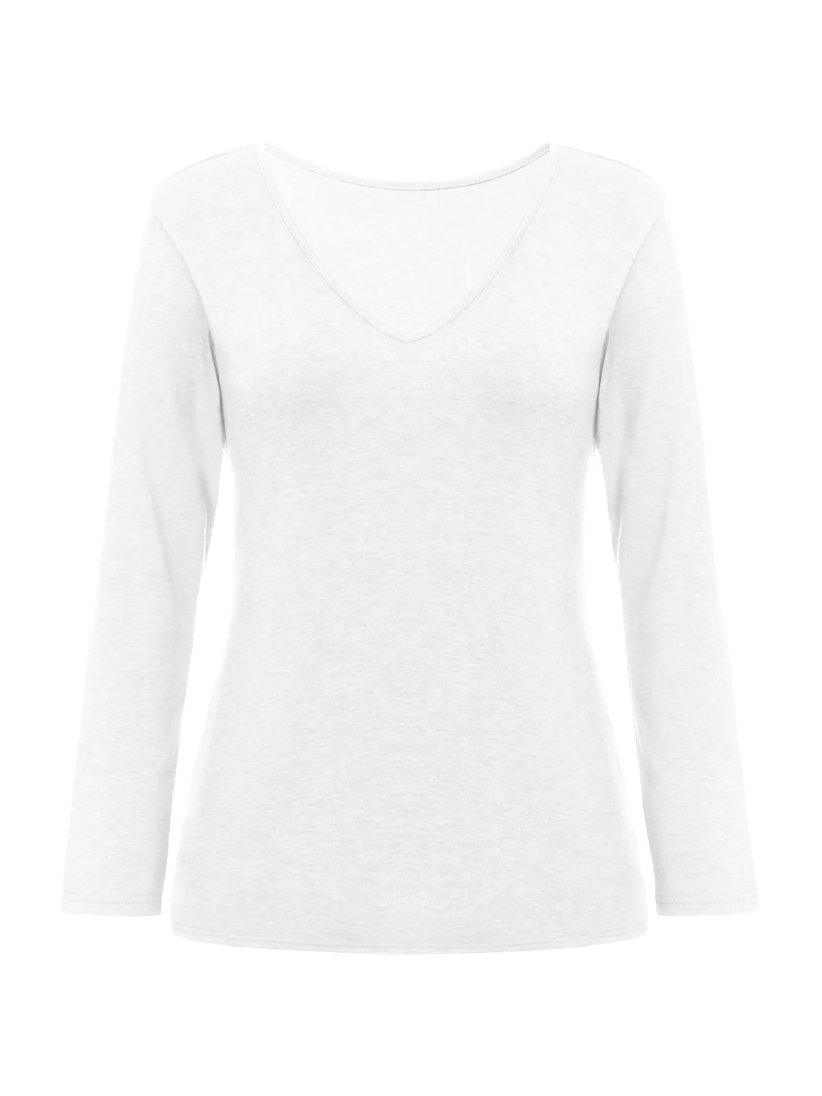 Design: Gevoerde zoom/rand; Materiaal: Jersey; Halstype: V-hals; Motief: Effen; Extra's: Op staal naden; Pasvorm: Normale pasvorm; Armlengte: Lange mouw; Lengte: Normale lengte