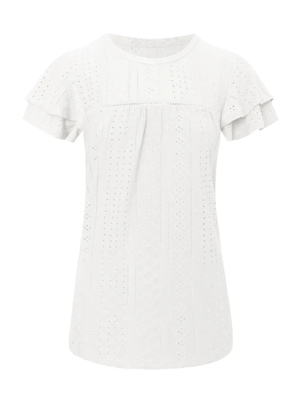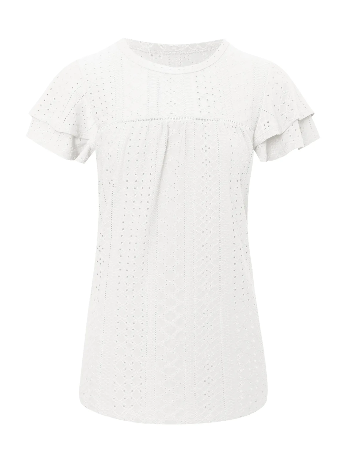Design: Gevoerde zoom/rand, Ingelegde kraag; Materiaal: Jersey; Halstype: Ronde hals; Motief: Effen; Details: Volant, Mesh; Extra's: Op staal naden, Voelt zacht aan; Pasvorm: Losse pasvorm; Armlengte: Kwartmouw; Lengte: Normale lengte