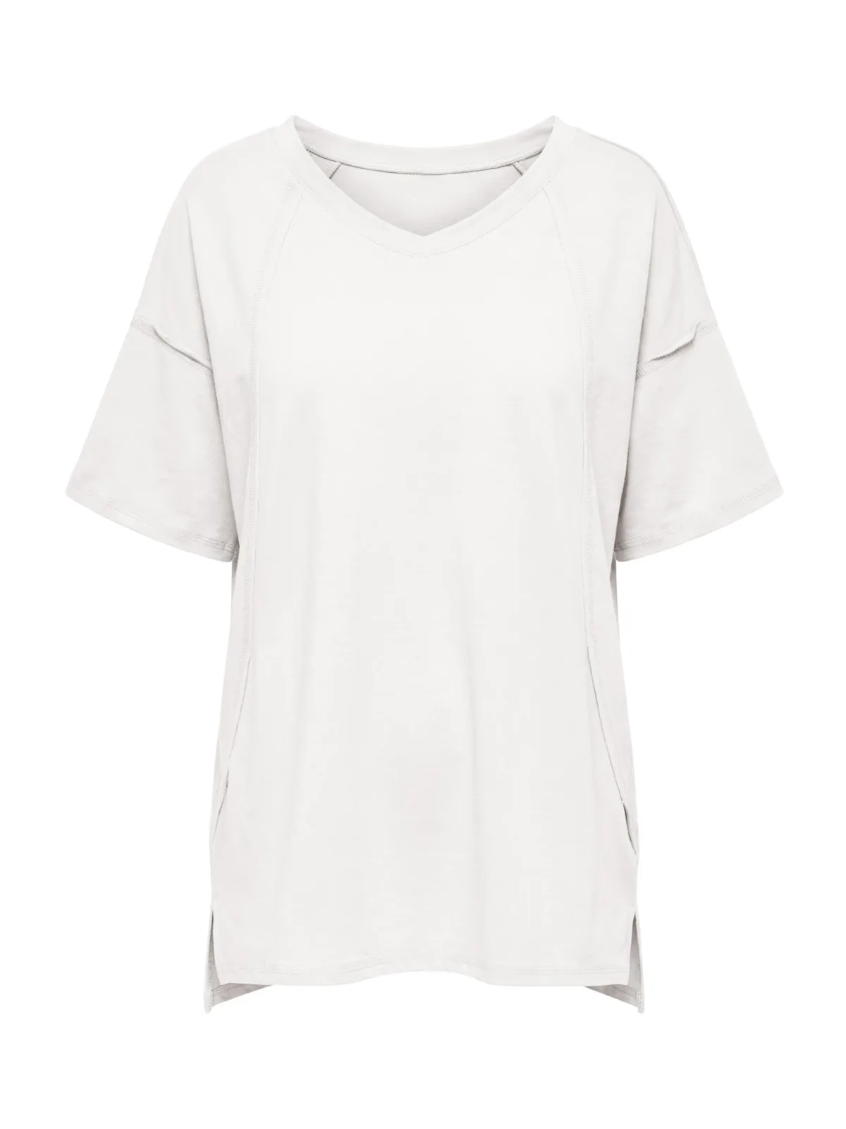 Design: Overcut schouder; Materiaal: Jersey; Halstype: V-hals; Motief: Effen; Extra's: Op staal naden; Pasvorm: Losse pasvorm; Armlengte: Halve mouw; Lengte: Normale lengte