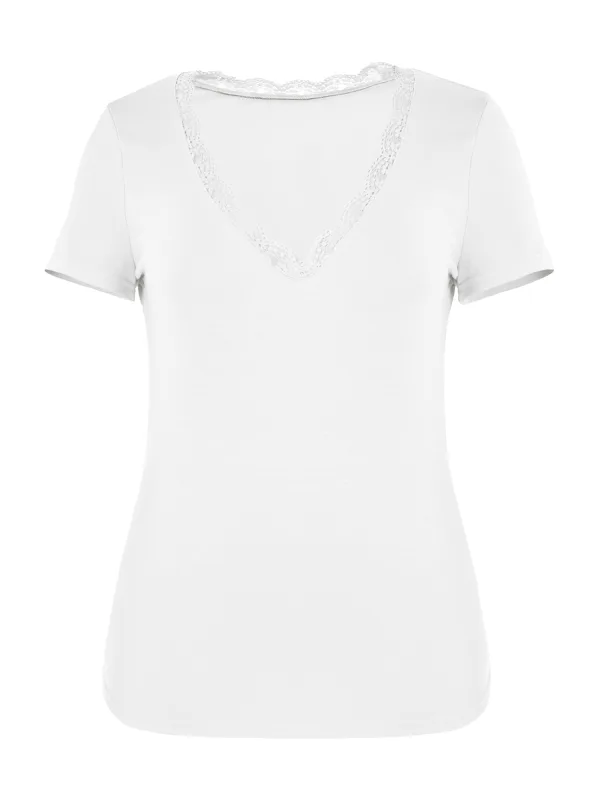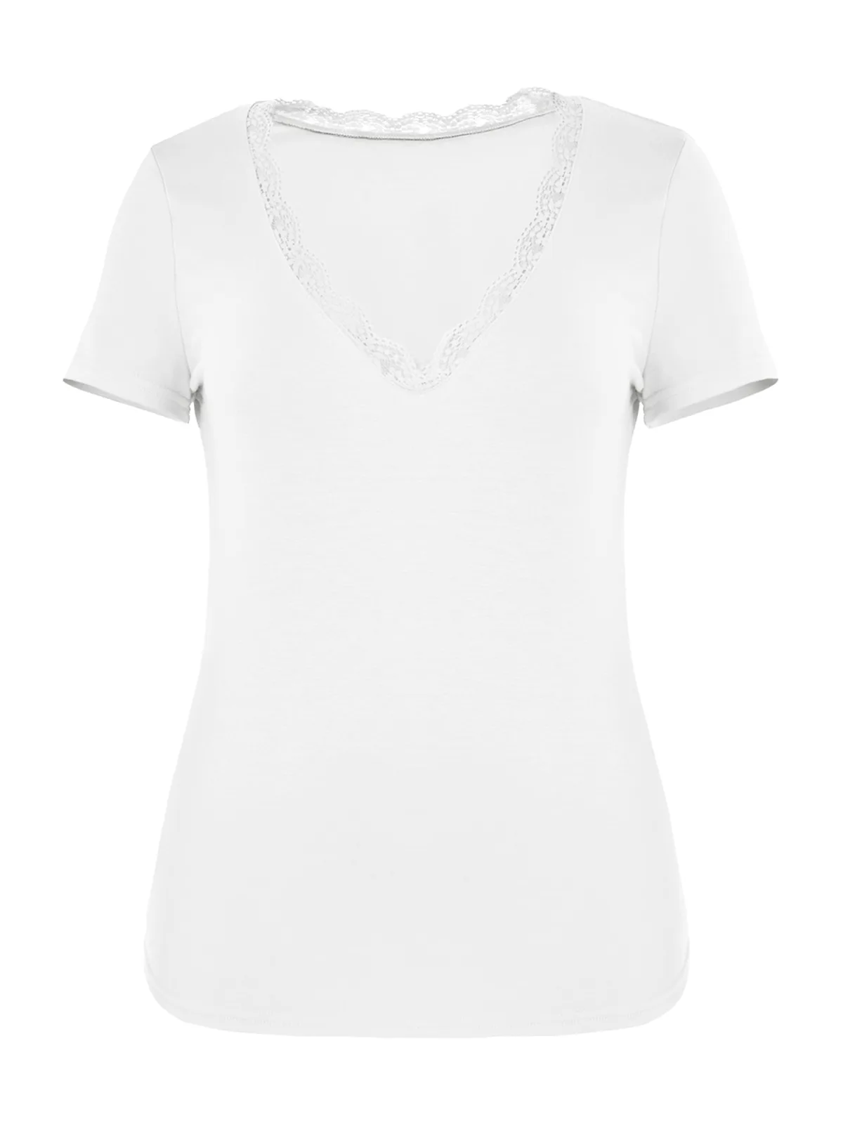 Design: Gevoerde zoom/rand, Rechte zoom; Materiaal: Jersey; Halstype: V-hals; Motief: Effen; Details: Kant; Extra's: Op staal naden, Voelt zacht aan; Pasvorm: Slanke pasvorm; Armlengte: Kwartmouw; Lengte: Normale lengte