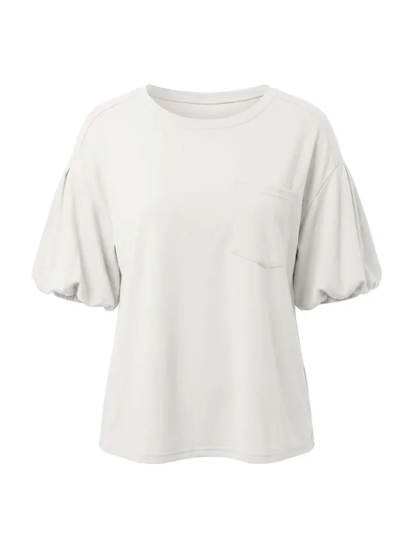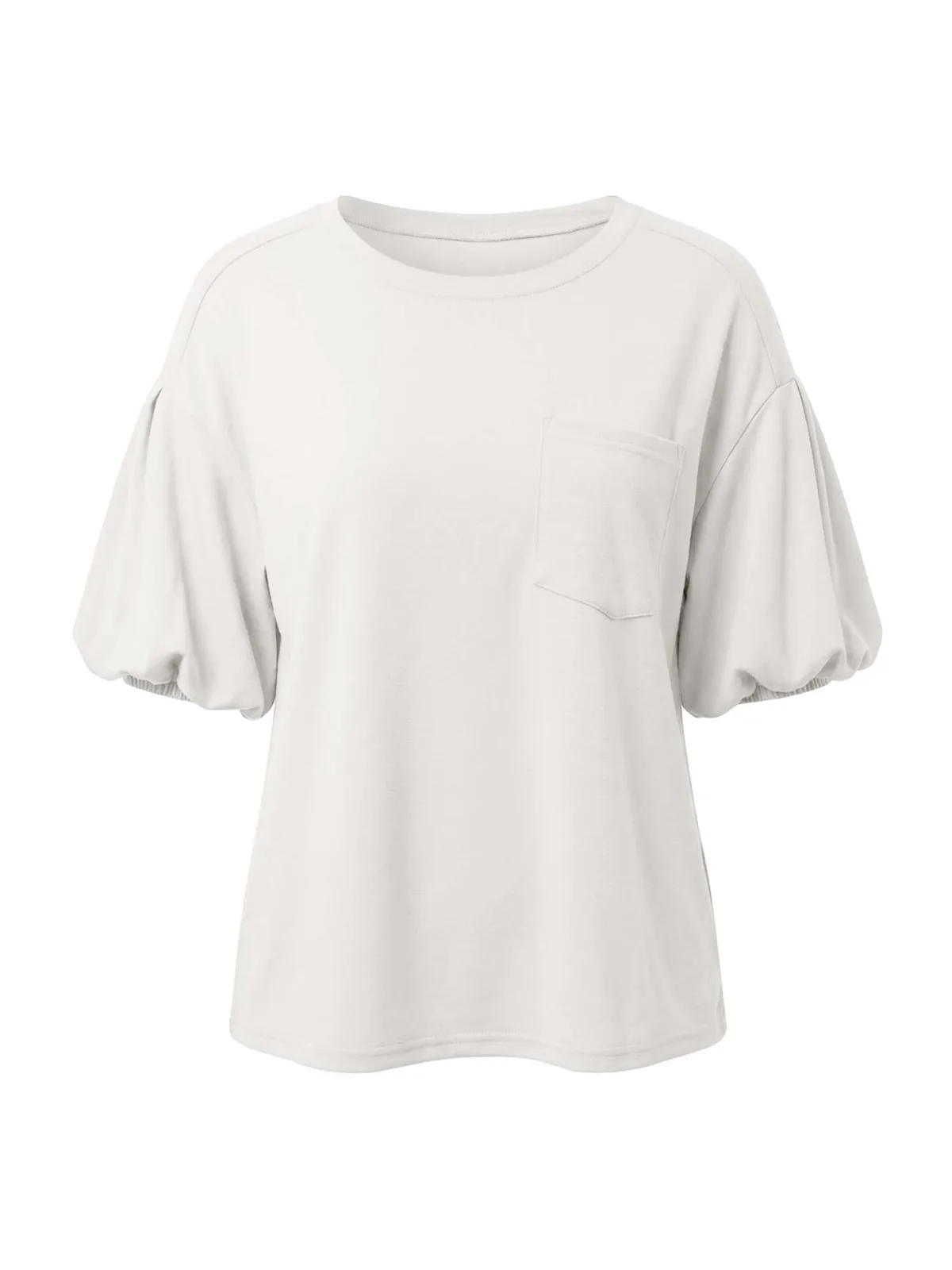 Design: Gevoerde zoom/rand; Materiaal: Jersey; Halstype: Ronde hals; Motief: Effen; Details: Gedrapeerd; Extra's: Op staal naden; Pasvorm: Losse pasvorm; Armlengte: Halve mouw; Lengte: Normale lengte