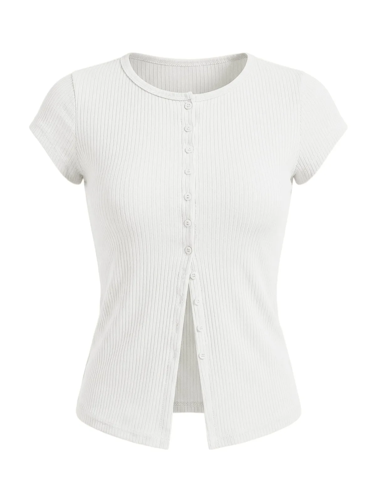 Design: Rechte zoom; Type sluiting: Knoopsluiting; Materiaal: Jersey; Halstype: Ronde hals; Motief: Effen; Extra's: Met textuur; Pasvorm: Normale pasvorm; Armlengte: Kwartmouw; Lengte: Normale lengte