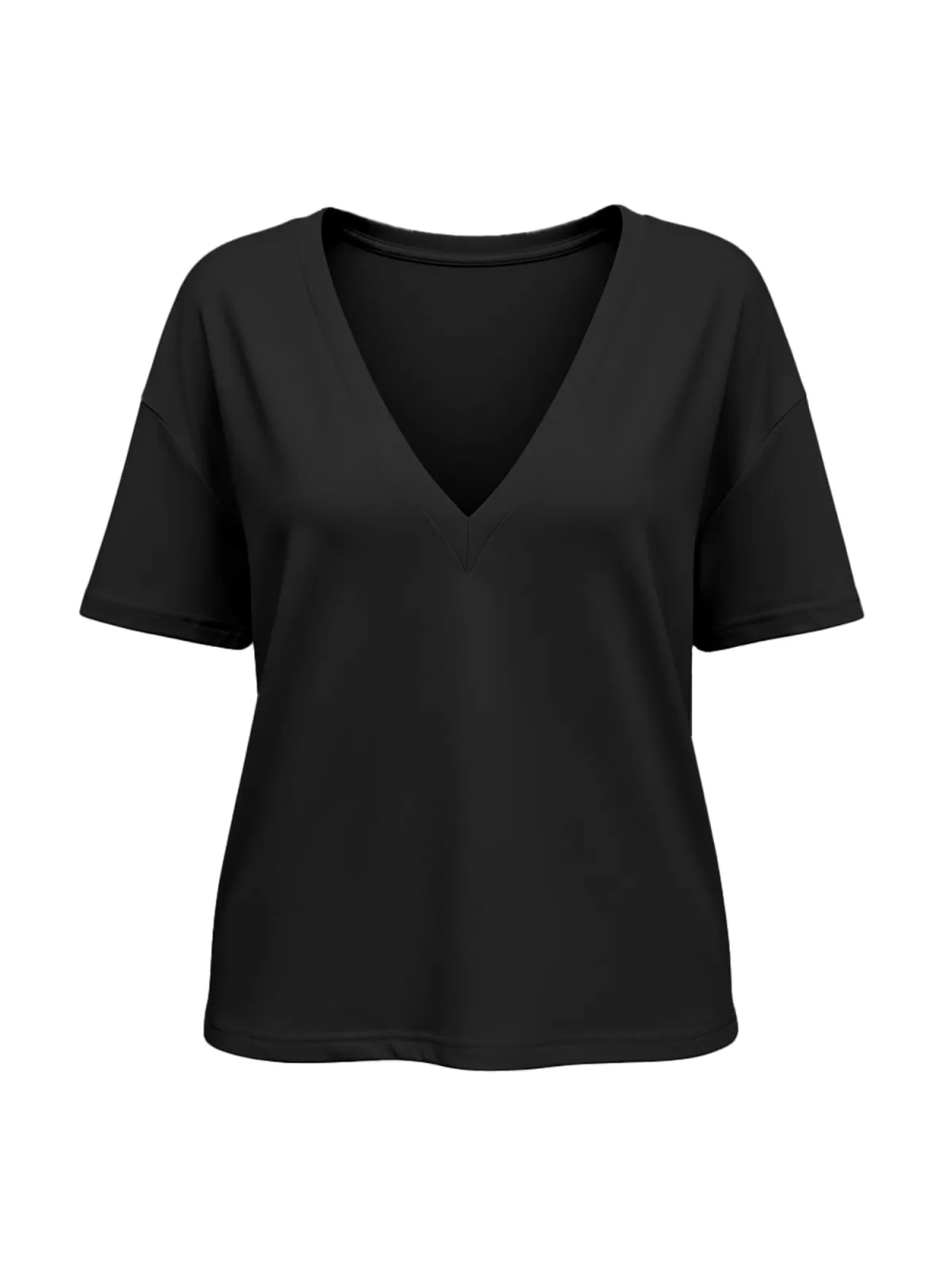 Design: Gevoerde zoom/rand; Materiaal: Jersey; Halstype: V-hals; Motief: Effen; Extra's: Op staal naden; Pasvorm: Losse pasvorm; Armlengte: Halve mouw; Lengte: Normale lengte