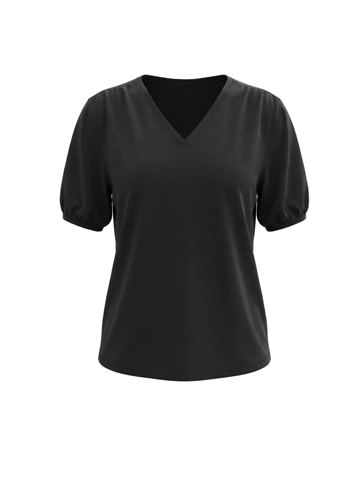 Design: Gevoerde zoom/rand; Materiaal: Jersey; Halstype: V-hals; Motief: Effen; Details: Gedrapeerd; Extra's: Op staal naden; Pasvorm: Normale pasvorm; Armlengte: Kwartmouw; Lengte: Normale lengte