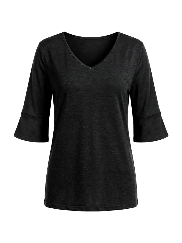 Design: Gevoerde zoom/rand, Rechte zoom, Ingelegde kraag; Materiaal: Jersey; Halstype: V-hals; Motief: Effen; Extra's: Op staal naden, Voelt zacht aan; Pasvorm: Normale pasvorm; Armlengte: Halve mouw; Lengte: Normale lengte