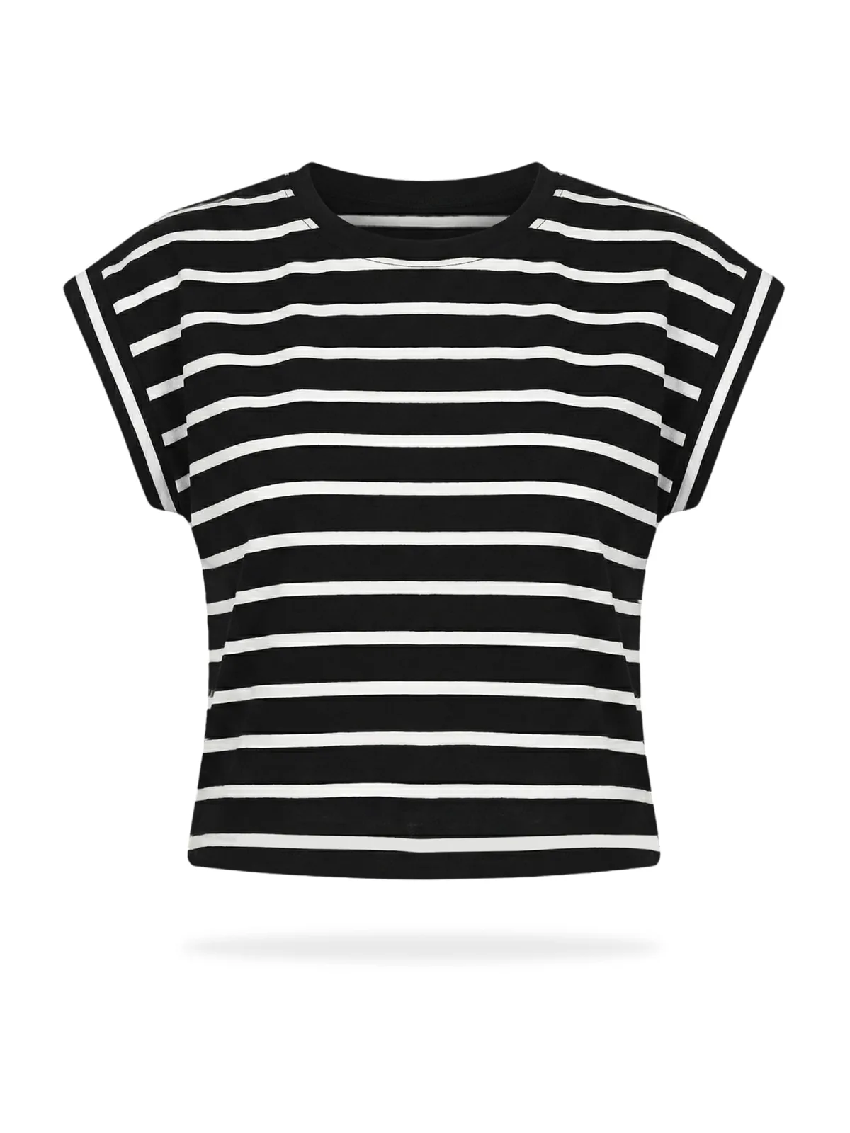 Design: Gevoerde zoom/rand, Geribbelde kraag; Materiaal: Jersey; Halstype: Ronde hals; Motief: Gestreept; Extra's: All-over patroon, Voelt zacht aan; Pasvorm: Losse pasvorm; Armlengte: Kwartmouw; Lengte: Normale lengte