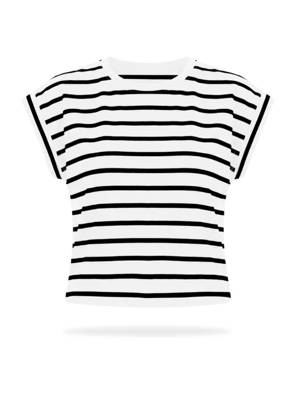 Design: Gevoerde zoom/rand, Rechte zoom; Materiaal: Jersey; Halstype: Ronde hals; Motief: Gestreept; Extra's: All-over patroon, Voelt zacht aan; Pasvorm: Losse pasvorm; Armlengte: Kwartmouw; Lengte: Normale lengte