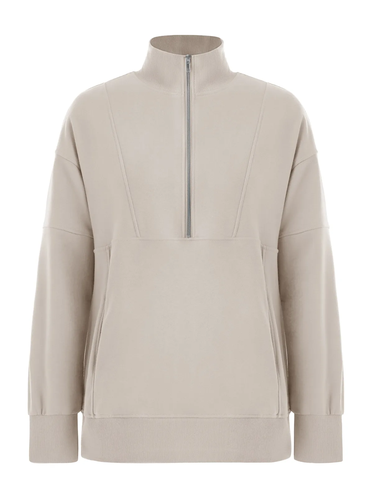 Design: Geribbelde kraag, Rechte zoom, Geribd ceintuurtje, Halve rits; Type sluiting: Ritssluiting; Materiaal: Sweatstof; Halstype: Schipperskraag; Motief: Effen; Extra's: Op staal naden, Voelt zacht aan; Pasvorm: Losse pasvorm; Armlengte: Lange mouw; Lengte: Normale lengte