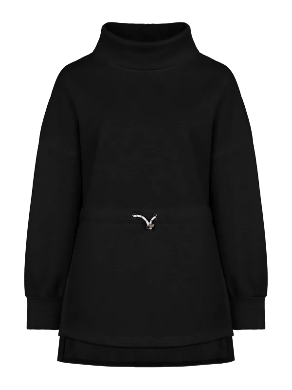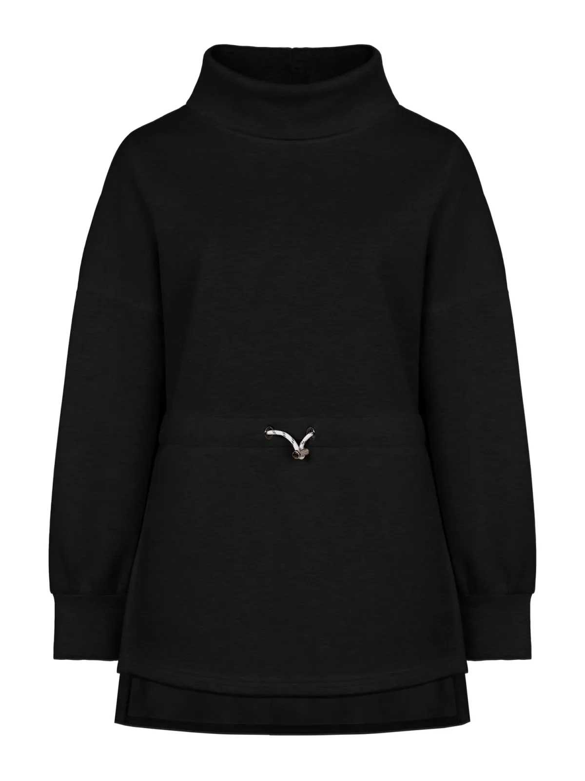 Design: Geribd ceintuurtje, Overcut schouder; Materiaal: Sweatstof; Halstype: Col; Motief: Effen; Details: Gedrapeerd; Extra's: Verstelbare taille; Pasvorm: Losse pasvorm; Armlengte: Lange mouw; Lengte: Lange pasvorm