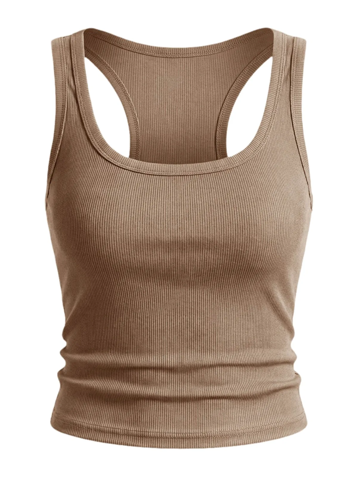 Design: Gevoerde zoom/rand, Geribbelde kraag; Materiaal: Jersey; Halstype: Ronde hals; Motief: Effen; Soort bandjes: Racerback; Extra's: Op staal naden, Voelt zacht aan; Pasvorm: Slanke pasvorm; Armlengte: Mouwloos; Lengte: Normale lengte