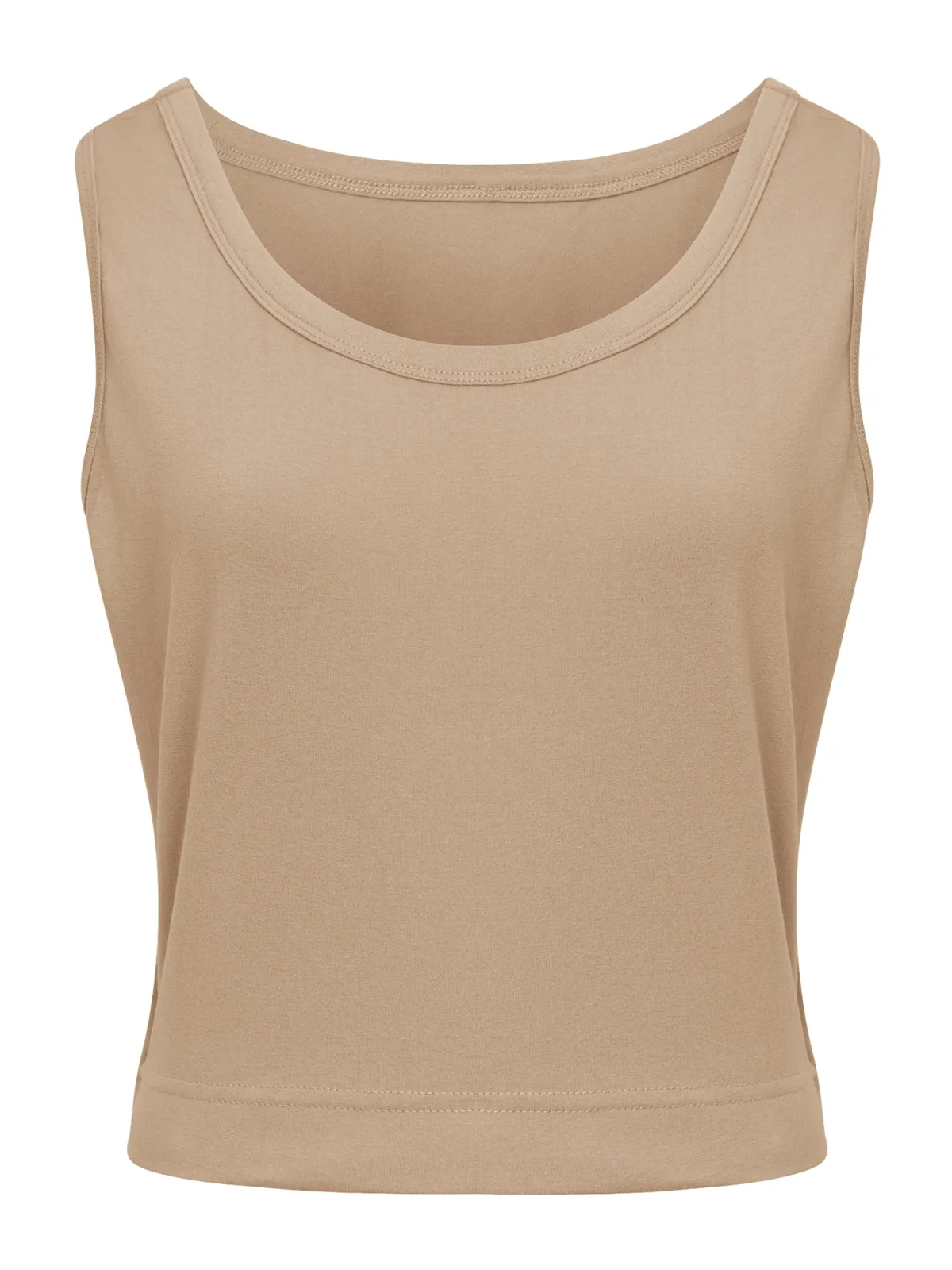 Design: Ingelegde kraag; Materiaal: Jersey; Halstype: Ronde hals; Motief: Effen; Soort bandjes: Normale bandjes; Extra's: Op staal naden; Pasvorm: Normale pasvorm; Armlengte: Mouwloos; Lengte: Korte pasvorm