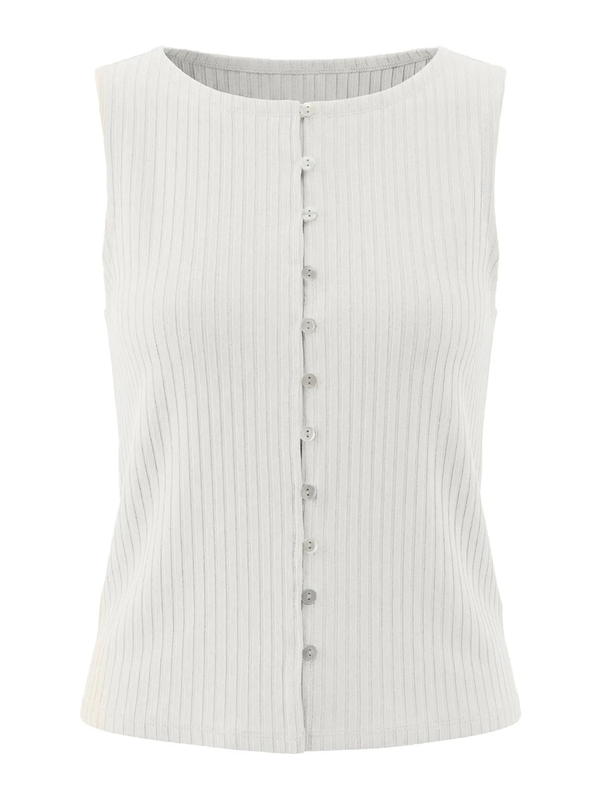 Design: Gevoerde zoom/rand, Knop placket, Geribbeld gebreid; Materiaal: Jersey; Halstype: Ronde hals; Motief: Effen; Soort bandjes: Normale bandjes; Extra's: Voelt zacht aan; Pasvorm: Slanke pasvorm; Armlengte: Mouwloos; Lengte: Normale lengte