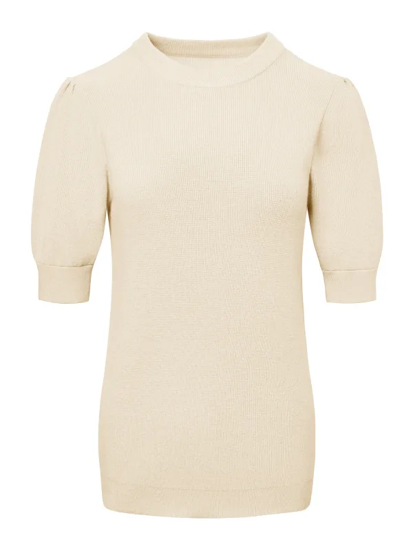Design: Pofmouwen; Materiaal: Knitwear; Halstype: Ronde hals; Motief: Effen; Details: Gedrapeerd; Extra's: Voelt zacht aan; Pasvorm: Normale pasvorm; Armlengte: Halve mouw; Lengte: Normale lengte