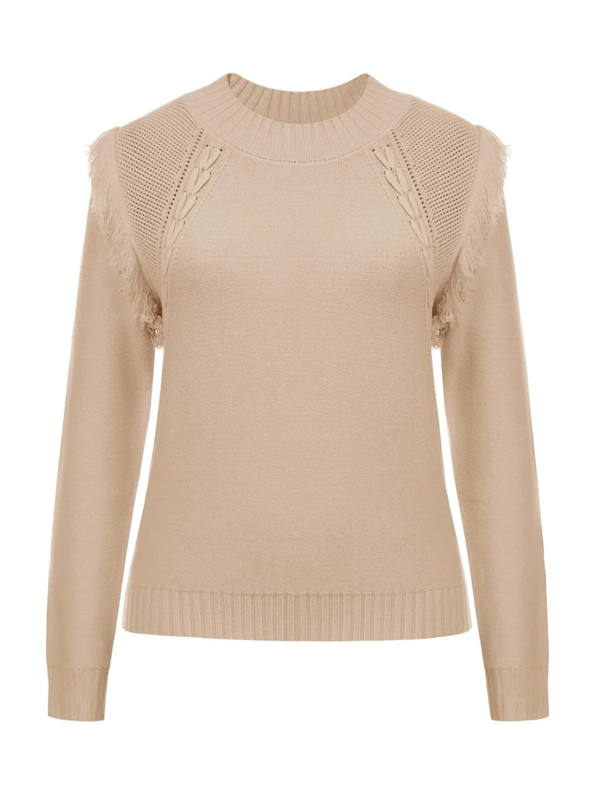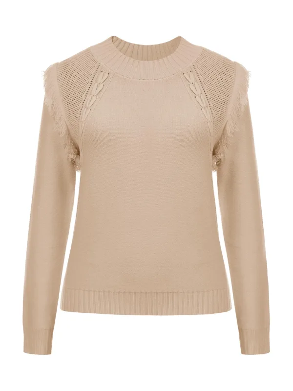 Design: Geribbelde kraag, Geribd ceintuurtje; Materiaal: Knitwear; Halstype: Opstaande kraag; Motief: Effen; Details: Franjes, Mesh; Extra's: Met textuur, Voelt zacht aan; Pasvorm: Normale pasvorm; Armlengte: Lange mouw; Lengte: Normale lengte