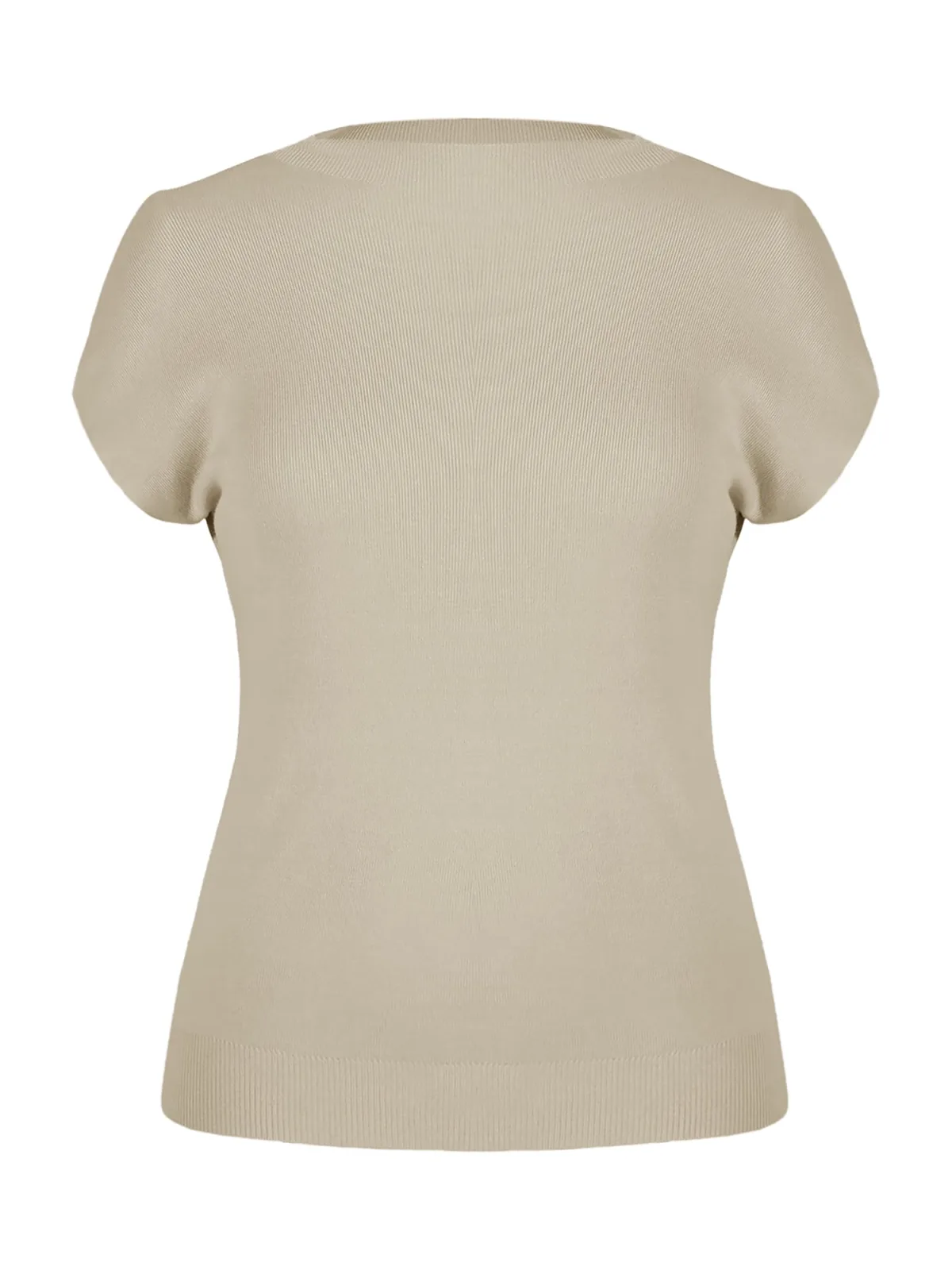 Design: Geribbelde kraag, Rechte zoom; Materiaal: Knitwear; Halstype: Opstaande kraag; Motief: Effen; Extra's: Op staal naden, Voelt zacht aan; Pasvorm: Slanke pasvorm; Armlengte: Kwartmouw; Lengte: Normale lengte