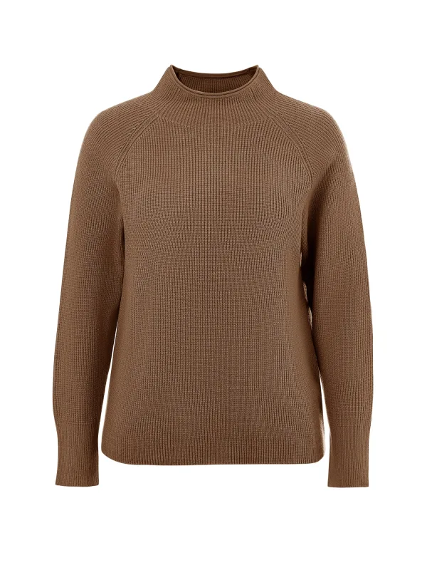 Design: Raglanmouwen, Geribd ceintuurtje; Materiaal: Knitwear; Halstype: Opstaande kraag; Motief: Mélange; Extra's: Met textuur; Pasvorm: Normale pasvorm; Armlengte: Lange mouw; Lengte: Normale lengte