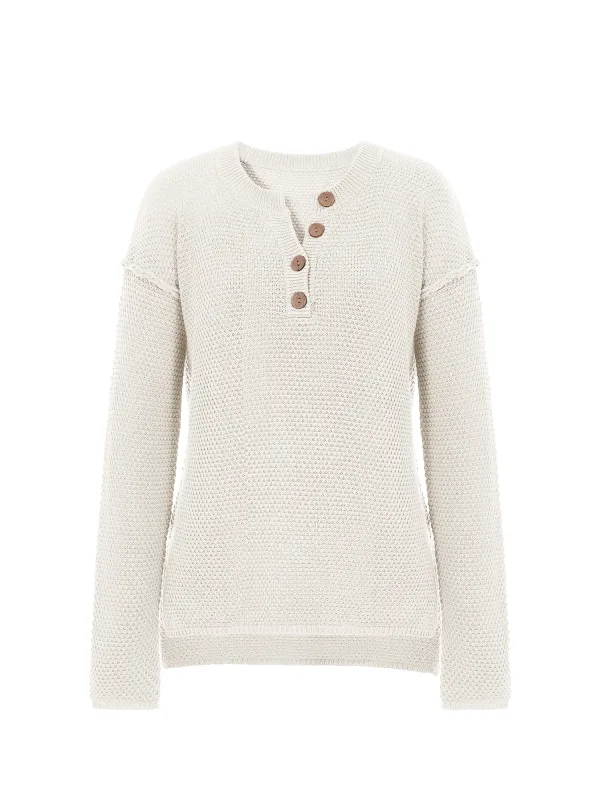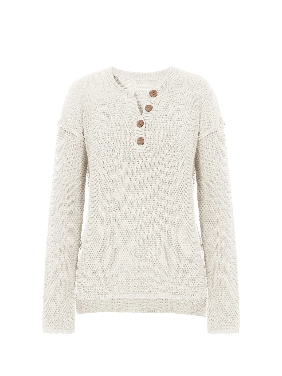 Design: Overcut schouder; Type sluiting: Knoopsluiting; Materiaal: Knitwear; Halstype: Henley hals; Motief: Effen; Extra's: Fully fashioned; Pasvorm: Losse pasvorm; Armlengte: Lange mouw; Lengte: Lange pasvorm