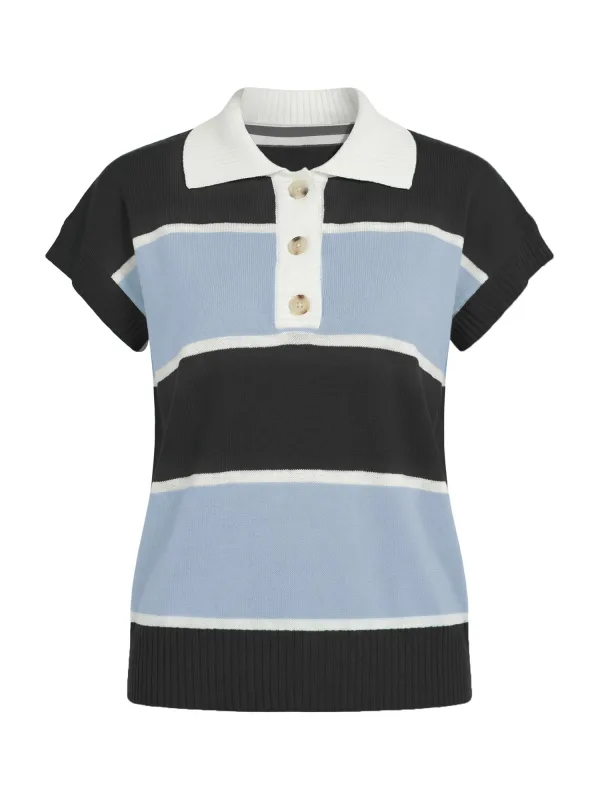 Design: Gesneden mouw, Geribbelde kraag, Knop placket, Geribd ceintuurtje; Type sluiting: Knoopsluiting; Materiaal: Knitwear; Halstype: Polokraag; Motief: Gestreept; Extra's: All-over patroon, Met textuur; Pasvorm: Normale pasvorm; Armlengte: Kwartmouw; Lengte: Normale lengte
