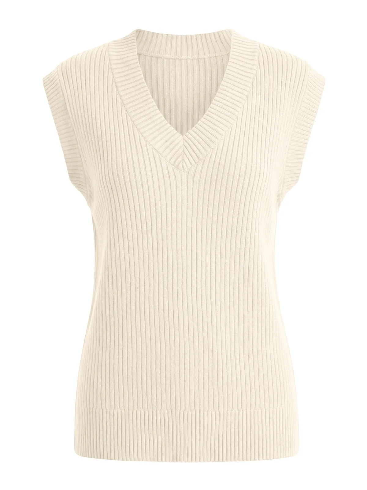 Design: Geribbeld gebreid; Materiaal: Knitwear; Halstype: V-hals; Motief: Effen; Extra's: Fully fashioned, Met textuur; Pasvorm: Losse pasvorm; Armlengte: Mouwloos; Lengte: Lange pasvorm