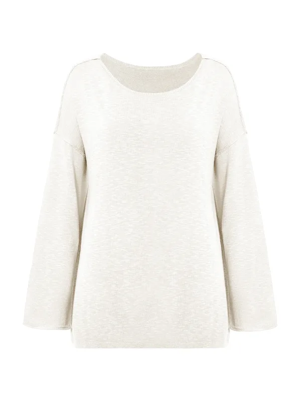 Design: Geribbelde kraag, Overcut schouder; Materiaal: Knitwear; Halstype: Ronde hals; Motief: Mélange; Extra's: Fully fashioned; Pasvorm: Losse pasvorm; Armlengte: Lange mouw; Lengte: Lange pasvorm