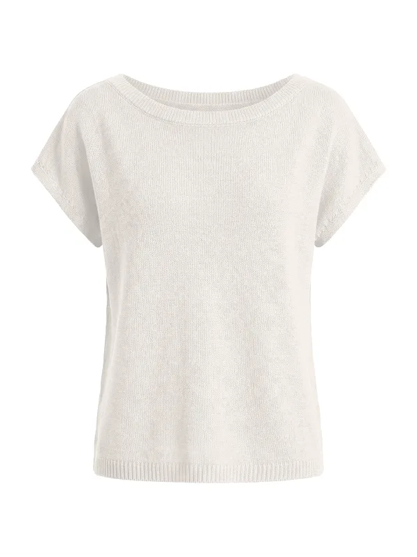 Design: Geribd ceintuurtje; Materiaal: Knitwear; Halstype: Boothals; Motief: Effen; Extra's: Met textuur; Pasvorm: Losse pasvorm; Armlengte: Kwartmouw; Lengte: Normale lengte